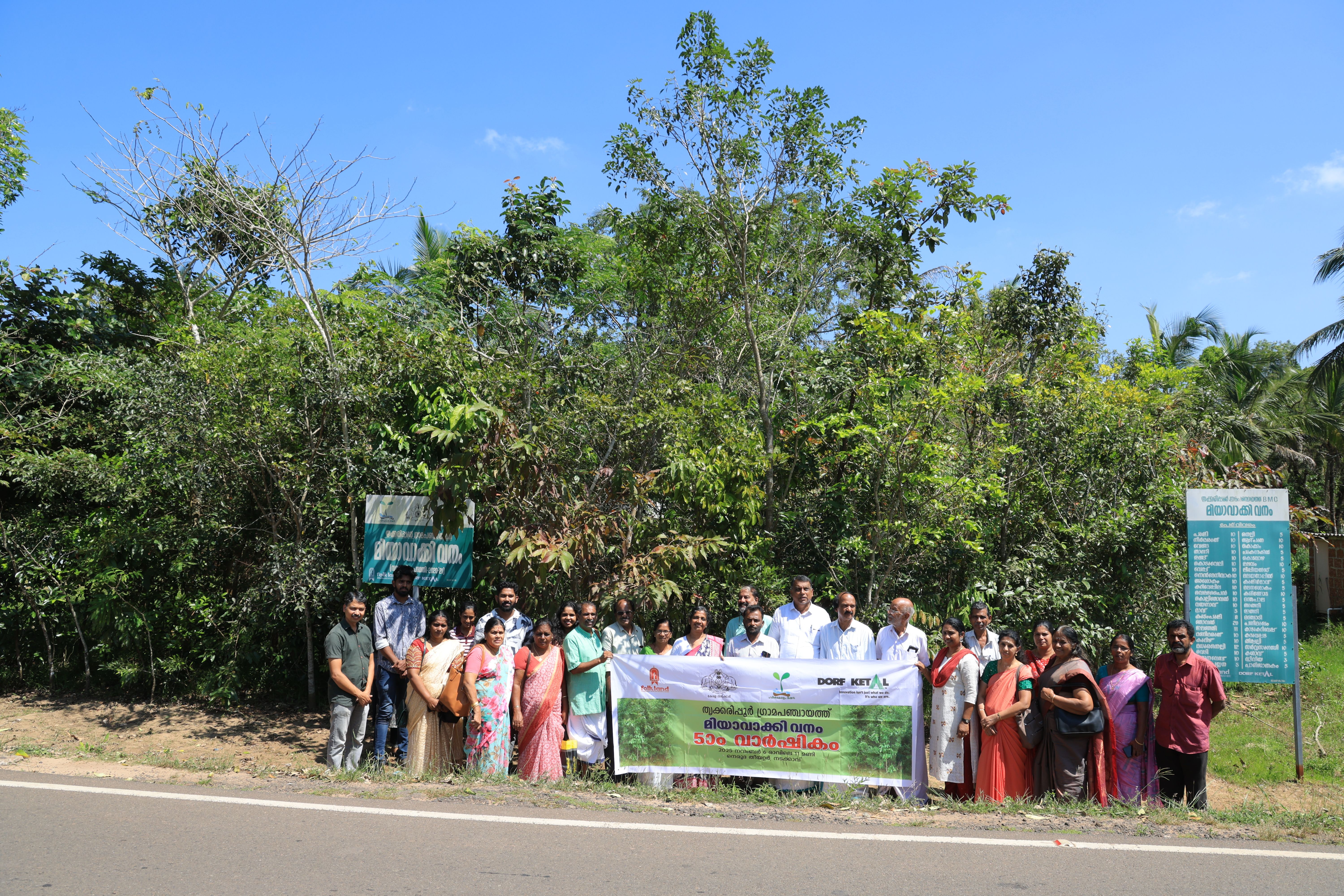 The fifth anniversary of the Trikaripur Nadakkavu Miyawaki afforestation project was celebrated under the leadership of Trikaripur Grama Panchayat, with the support of Folkland and Dorf Ketal. Inaugurated by Panchayat President Sri. V. K. Bava and presided over by Dr. V. Jayarajan, the event honored contributors and emphasized the vital role of trees in sustaining life and protecting the planet.