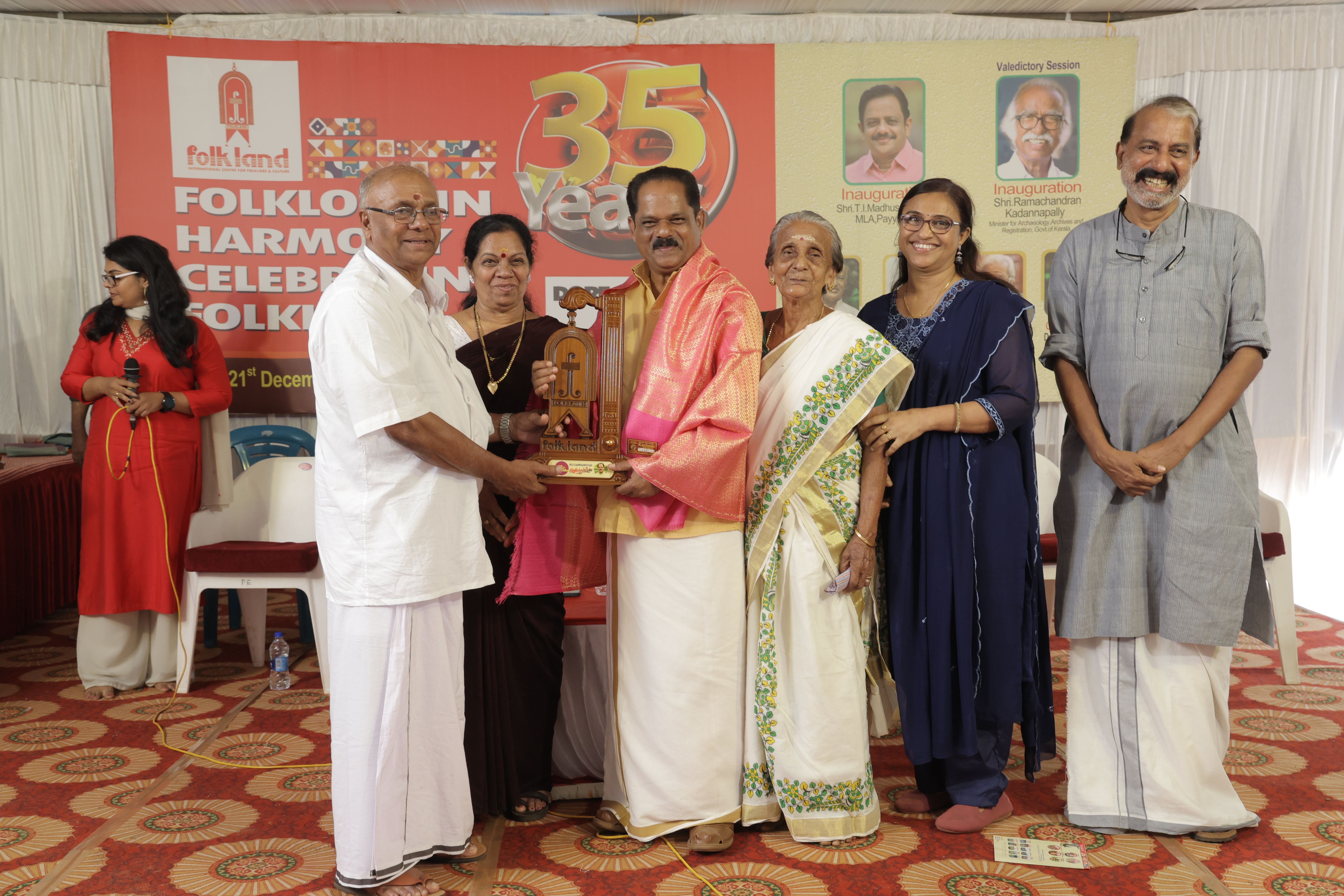 On December 20, 2024, Folkland International Centre for Folklore and Culture marked its 35th anniversary at its Payyanur Centre with vibrant celebrations, supported by Dorf Ketal Chemicals India. The event was a blend of cultural performances, academic reflections, and heartfelt tributes to 35 unsung heroes of Kerala’s lesser-known art forms. The function was presided over by Dr. V. Jayarajan, Chairman of Folkland, and inaugurated by Shri T.I. Madhusoodhanan, MLA, who praised Folkland's tireless cultural preservation efforts over the past three and a half decades. A highlight of the celebration was the honoring of 35 traditional artists and practitioners—ranging from folk sculptors, dancers, singers, and voice artists to environmentalists, midwives, and traditional cooks—who have contributed to Kerala’s intangible cultural heritage. Each was felicitated with a shawl, a wooden memento, and a certificate. Padma Shri recipient and Kathakali maestro Sadanam Balakrishnan graced the occasion as chief guest, lending his stature and encouragement to the proceedings. The event also featured the inauguration of a two-month mural painting training course, launched by eminent art historian Shri K.K. Marar and addressed by renowned mural artist Shri K.R. Babu. The anniversary was a tribute to tradition, community, and cultural resilience, reinforcing Folkland’s mission to keep Kerala’s rich heritage alive and thriving.